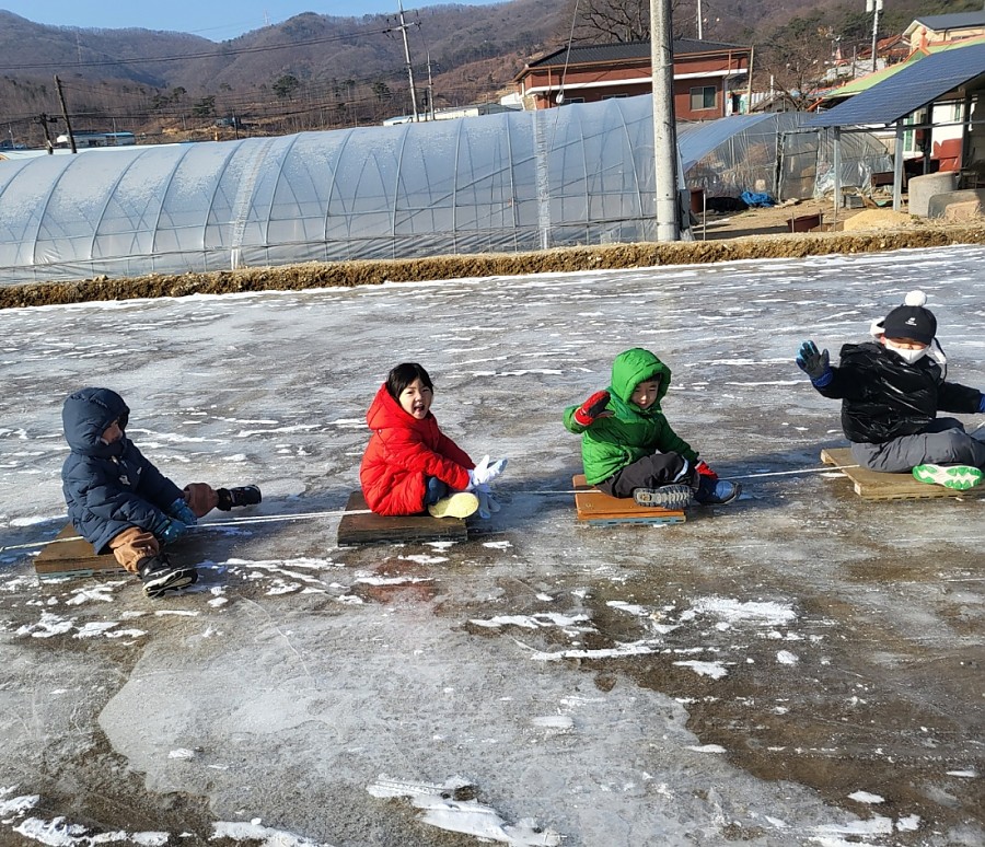 차가운 공기 속에서도 아이들의 웃음소리는 더욱 반짝이던 하루~ 어린이집 친구들과 함께 감성체험장 얼음 썰매장에 다녀왔어요!