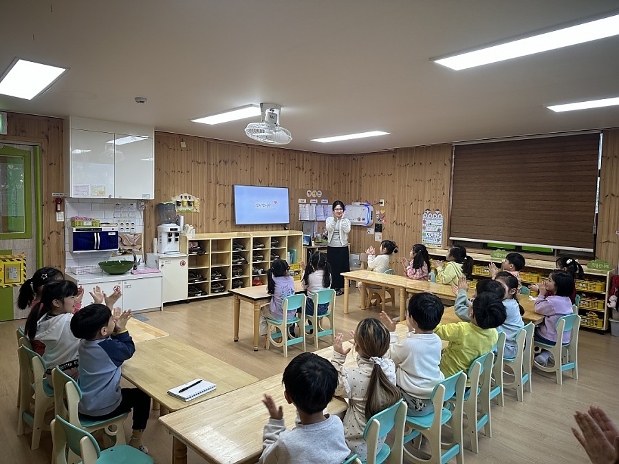 잎새반 친구들이 2026학년도 초등학교 이음 교육 활동에서 초등학교 진학을 앞두고 ‘초등학교 입학 전 준비’ 교육에 참여했습니다. 현직 초등학교 선생님의 강의를 통해 교실에서의 생활 규칙, 친구들과 의 관계 형성, 준비물 등 실질적인 학교생활 정보를 배우며, 아이들이 자신감 있게 초등학교에 적응할 수 있는 많은 도움을 얻는 뜻깊은 시간이었습니다. 또한 엄사초등학교를 방문하여 교실, 도서관, 급식실, 운동장 등 학교 시설을 직접 둘러보며 초등학교 생활을 미리 경험해 보았고, 학교에 대한 궁금증을 풀며 기대감과 자신감을 키우는 즐겁고 의미 있는 시간이었습니다.