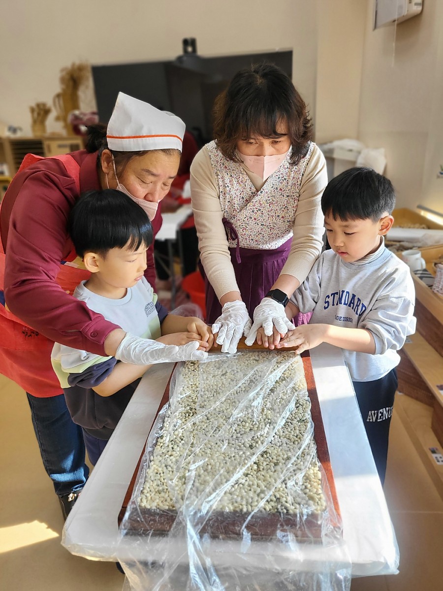 아이들은 강정이 어떻게 만들어지는지 알아본 뒤, 선생님의 도움으로 섞인 재료의 모양을 만들며 즐겁게 활동에 참여하였습니다.