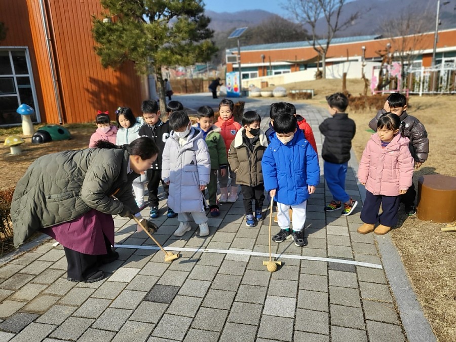 민속놀이 시간에는 윷놀이, 제기차기, 투호 놀이, 딱지치기를 하며 우리 전통놀이의 재미를 느껴보았습니다. 친구들과 함께 응원하고 차례를 지키며 활동하는 모습 속에서 협동심과 배려하는 마음도 엿볼 수 있었습니다.