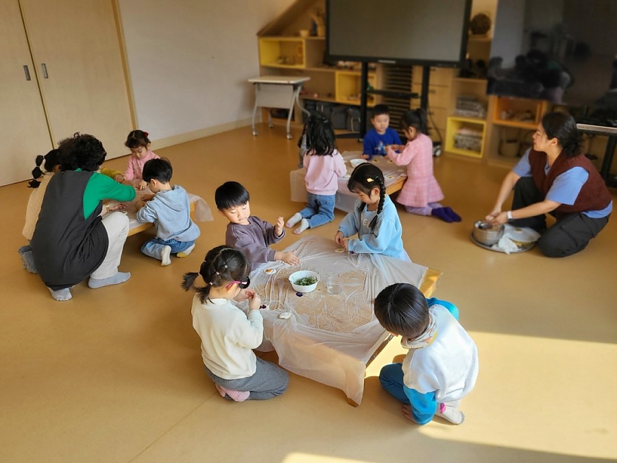 아이들은 반죽을 만지고 꽃을 올리며 자연의 색과 향을 느껴보고, 자신만의 화전을 완성하는 즐거움을 경험했습니다. 완성된 화전을 친구들과 나누어 먹으며 더욱 따뜻한 시간을 보냈습니다.