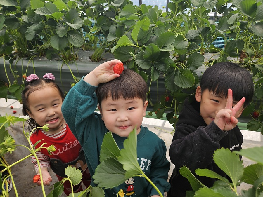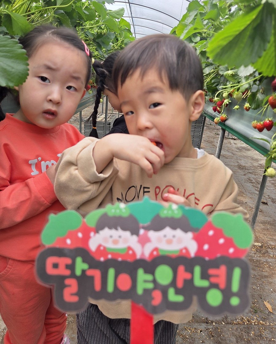 계룡시 정보화 마을에서 딸기 따기 체험활동을 했습니다. 우리 아이들이 고사리손으로 빨갛게 익은 딸기를 하나하나 정성껏 따서 입에 넣어 보며 새콤달콤한 맛에 웃음꽃을 피우고, 자연 속에서 소중한 추억을 쌓는 시간이었습니다.